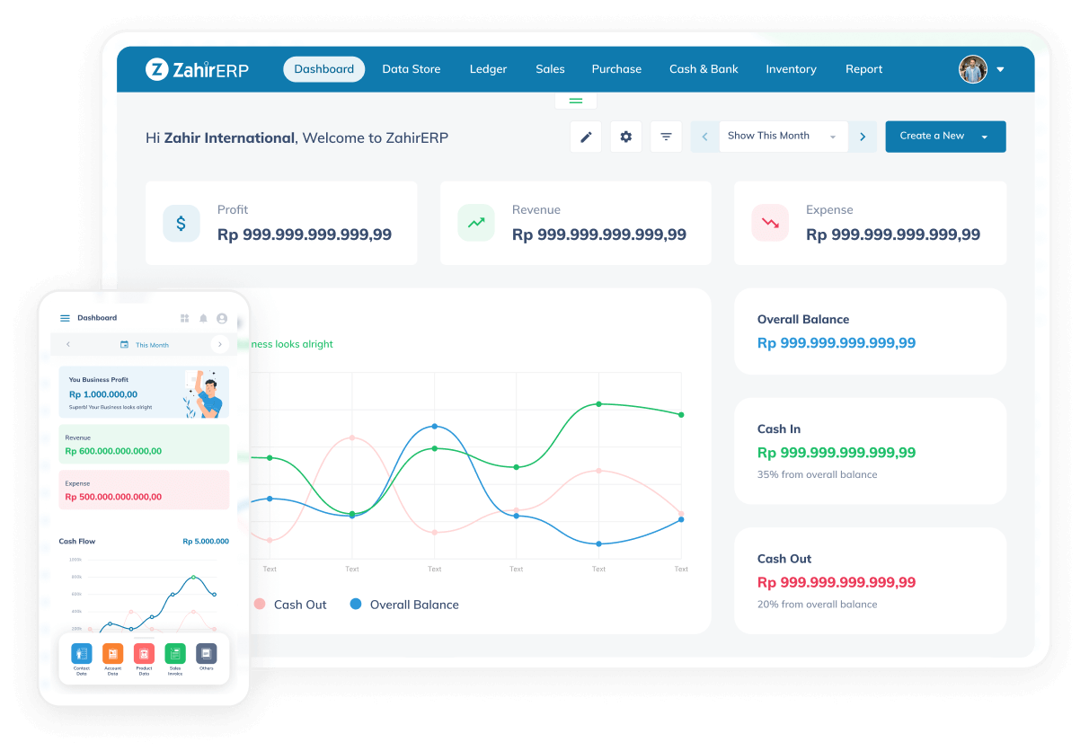 Semua fitur yang tersedia di Zahir online akan memudahkan Anda dalam mengelola pencatatan keuangan bisnis