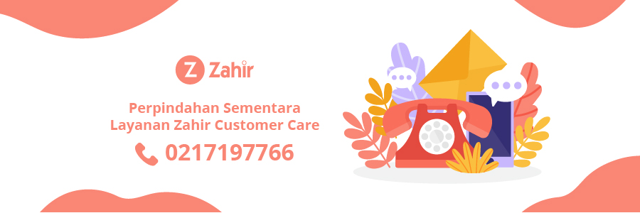 Dengan ini kami menginformasikan mulai tanggal 27 April 2020, Untuk Layanan customer care by phone Zahir yang saat ini terhubung di 1500719 akan dialihkan sementara ke nomer 021-7197766. Saat ini Anda sudah bisa menggunakan nomer yang terbaru untuk dapat terhubung dengan Zahir Customer Care by Phone.
